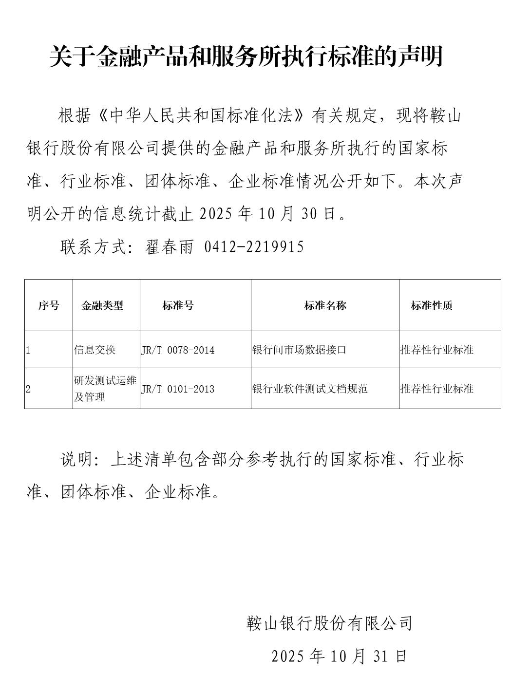 当前位置:首页 > 最新公告 >关于金融产品和服务所执行标准的声明