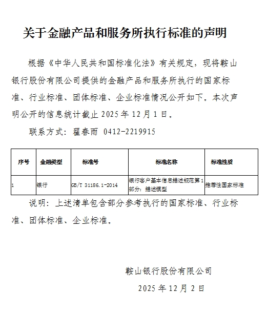 当前位置:首页 > 最新公告 >关于金融产品和服务所执行标准的声明