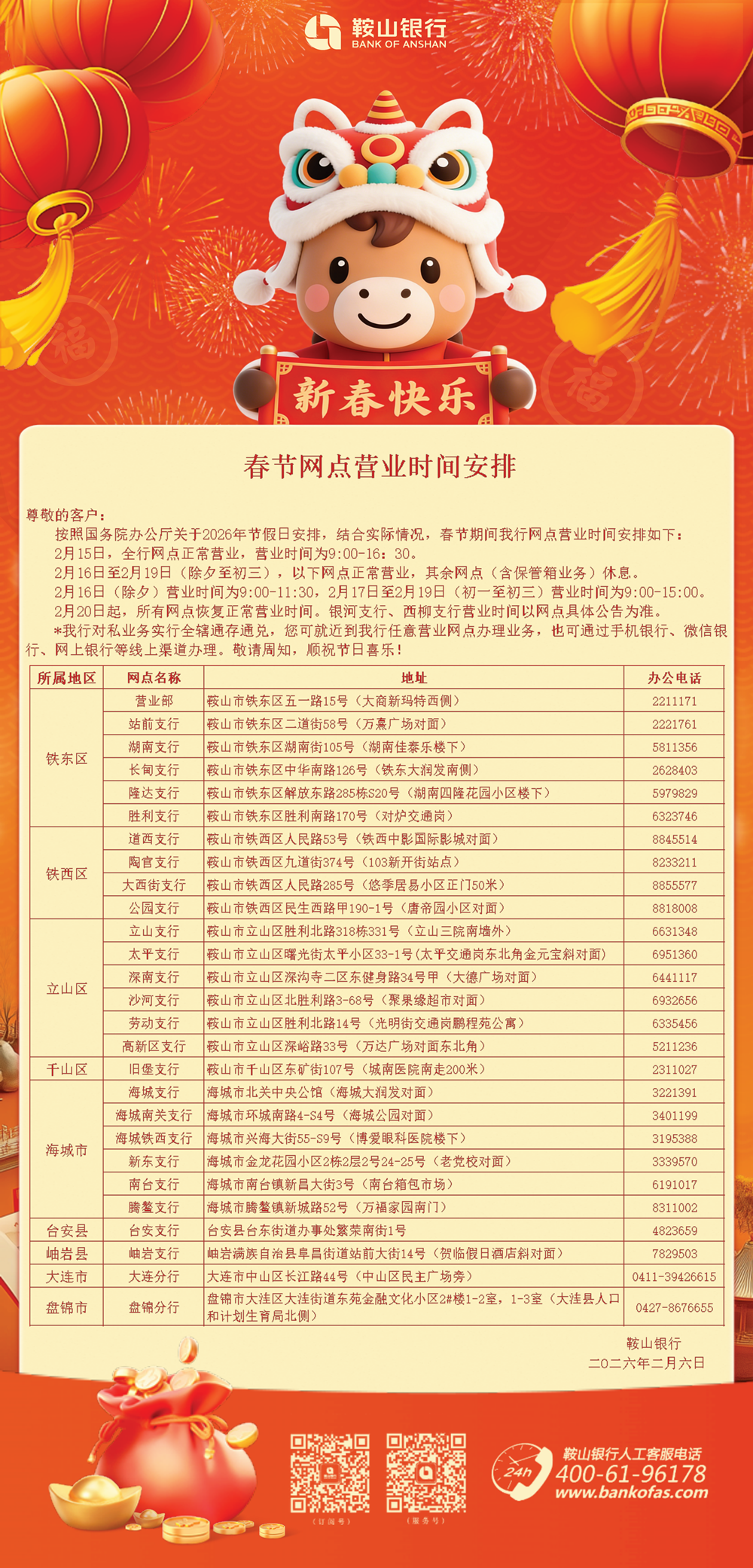 • 春节网点营业时间安排...